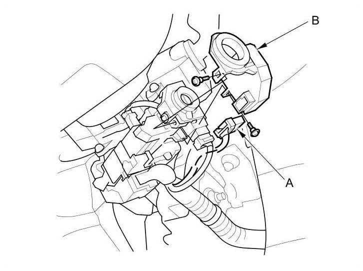 2. Disconnect the 7P connector (A) from the immobilizer-keyless control unit (B).