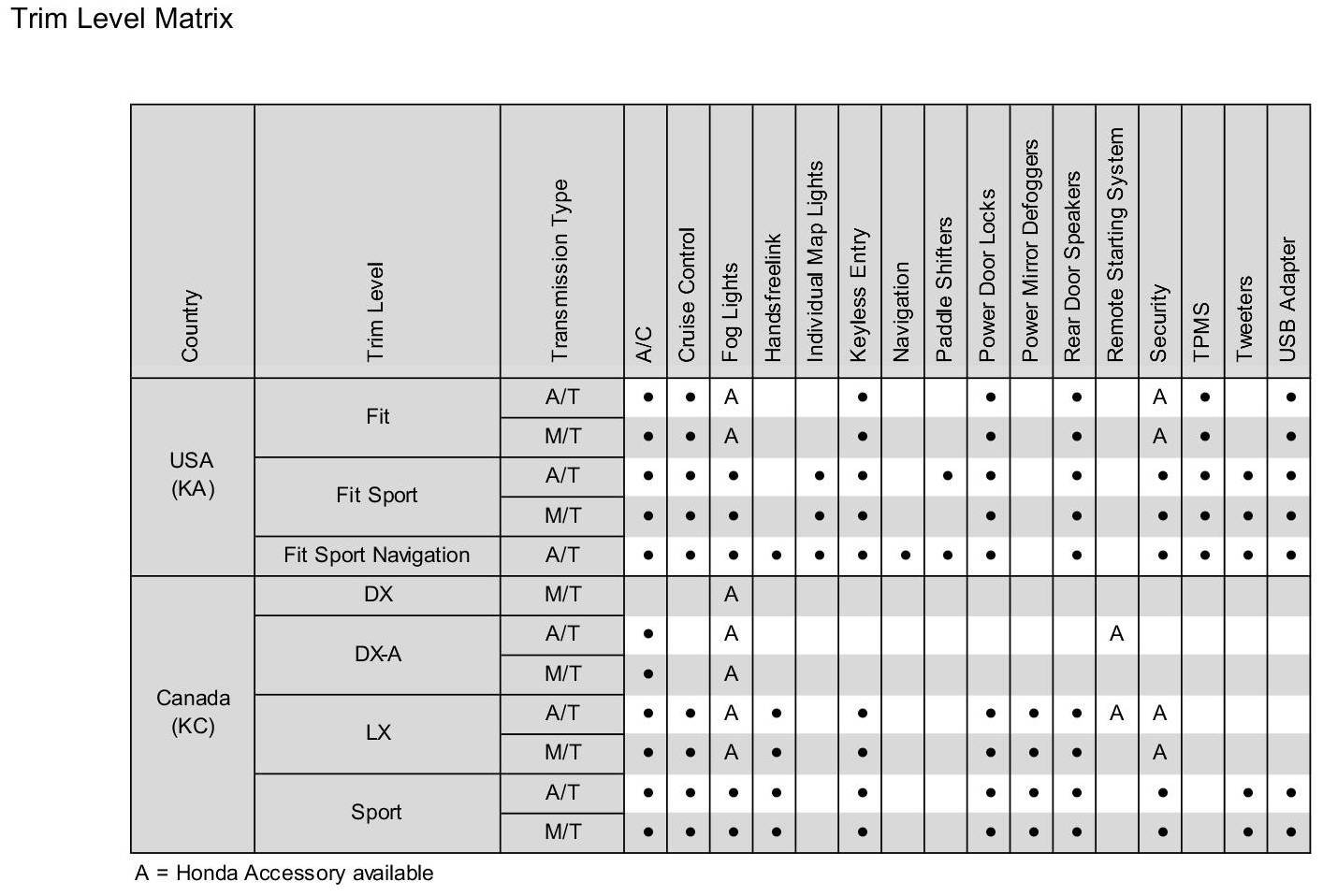 ETM Trim Level Matrix