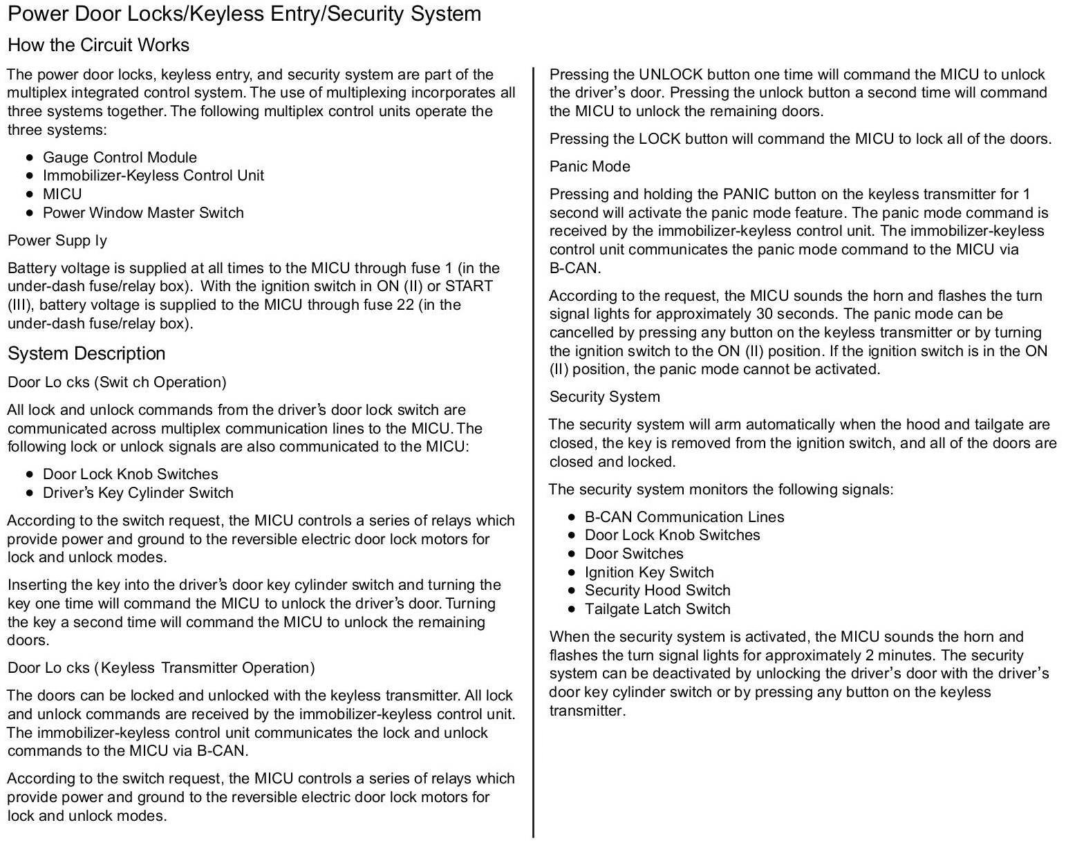 Home >> Honda >> 2012 >> Fit L4-1.5L >> Repair and Diagnosis >> Body and Frame >> Locks >> Keyless Entry >> Description and Operation >> How The Power Door Locks/Keyless Entry/Security System Circuit Works