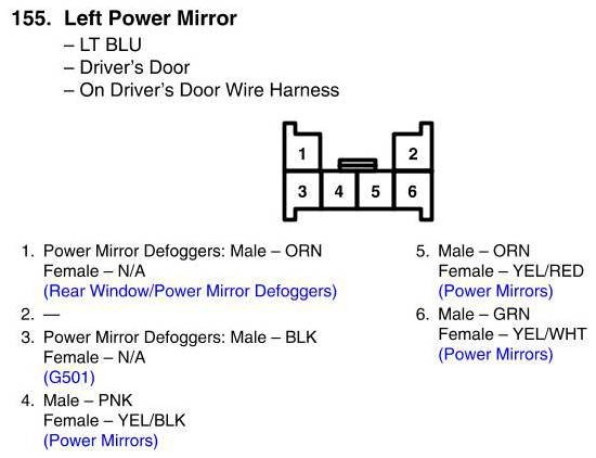 View 155 - Left Power Mirror Connector View