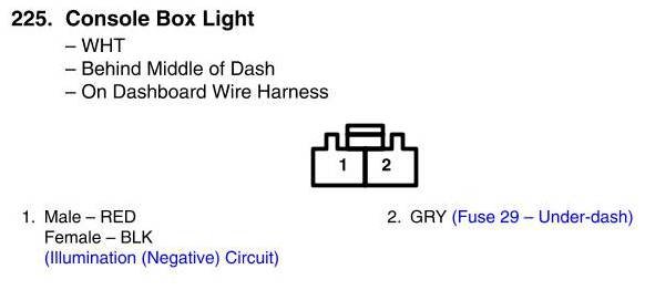 View 225 - Console Box Light Connector View