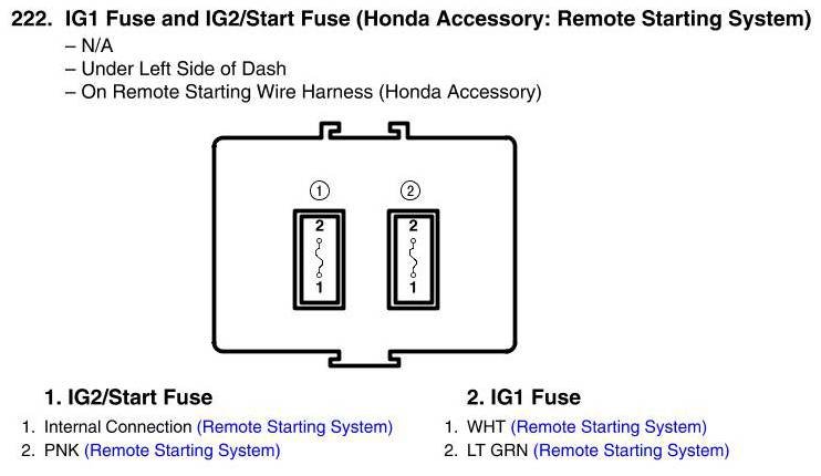 IG1 Fuse And IG2/Start Fuse Connector View (Honda Accessory: Remote Starting System)