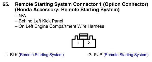 Remote Starting System Connector 1 (Option Connector) Connector View (Honda Accessory: Remote Starting System)