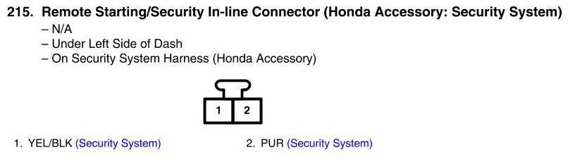 Remote Starting/Security In-Line Connector Connector View (Honda Accessory: Security System)