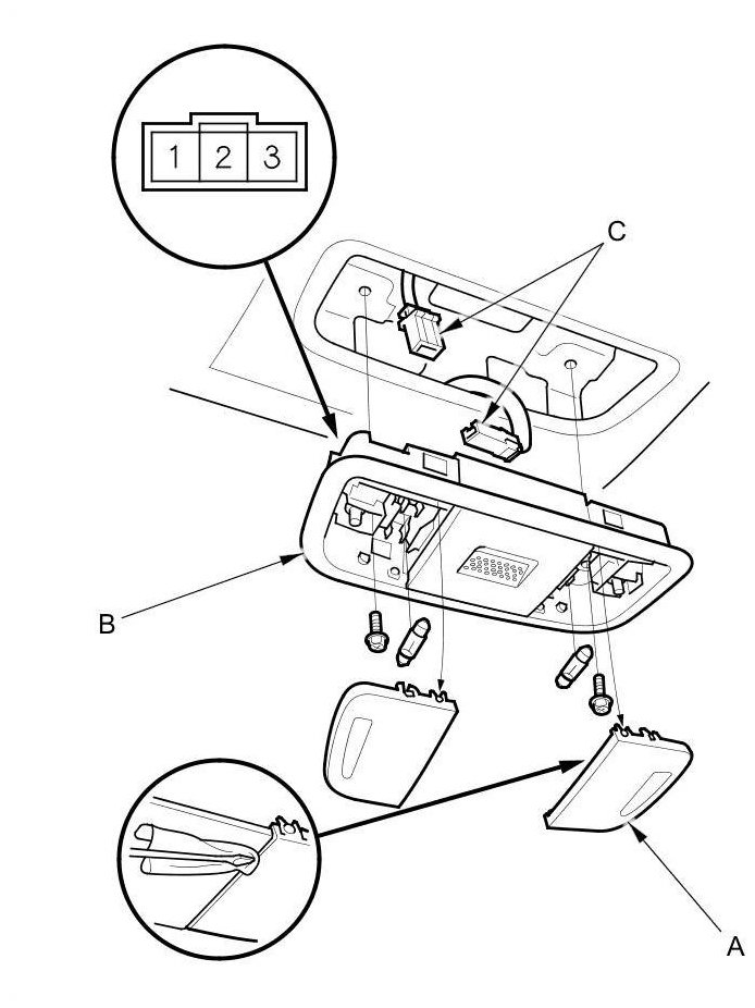 4. Disconnect the connectors (C) from the individual map light.
