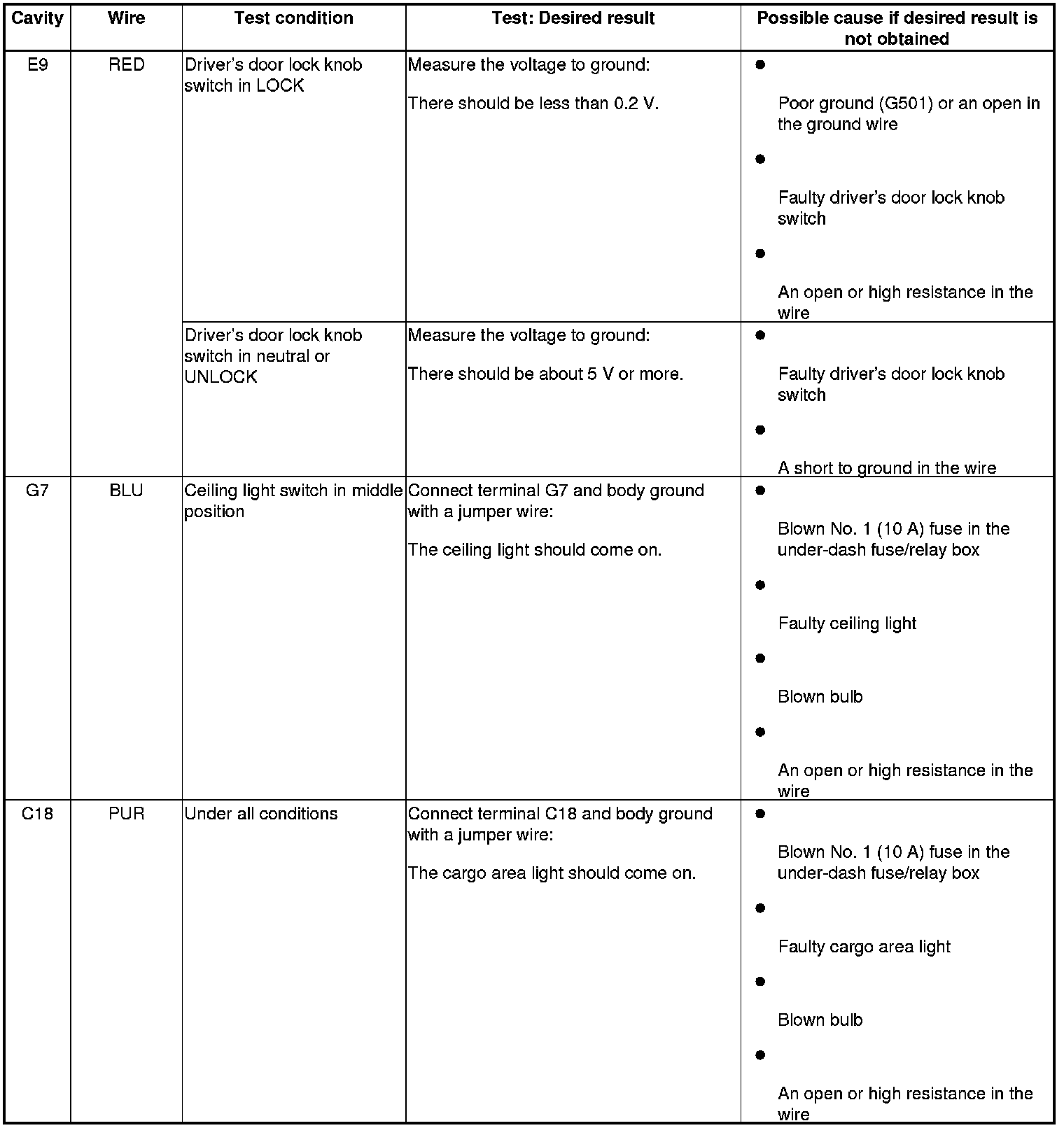 NOTE: Before testing, check for No. 22 (7.5 A) fuse in the under-dash fuse/relay box.