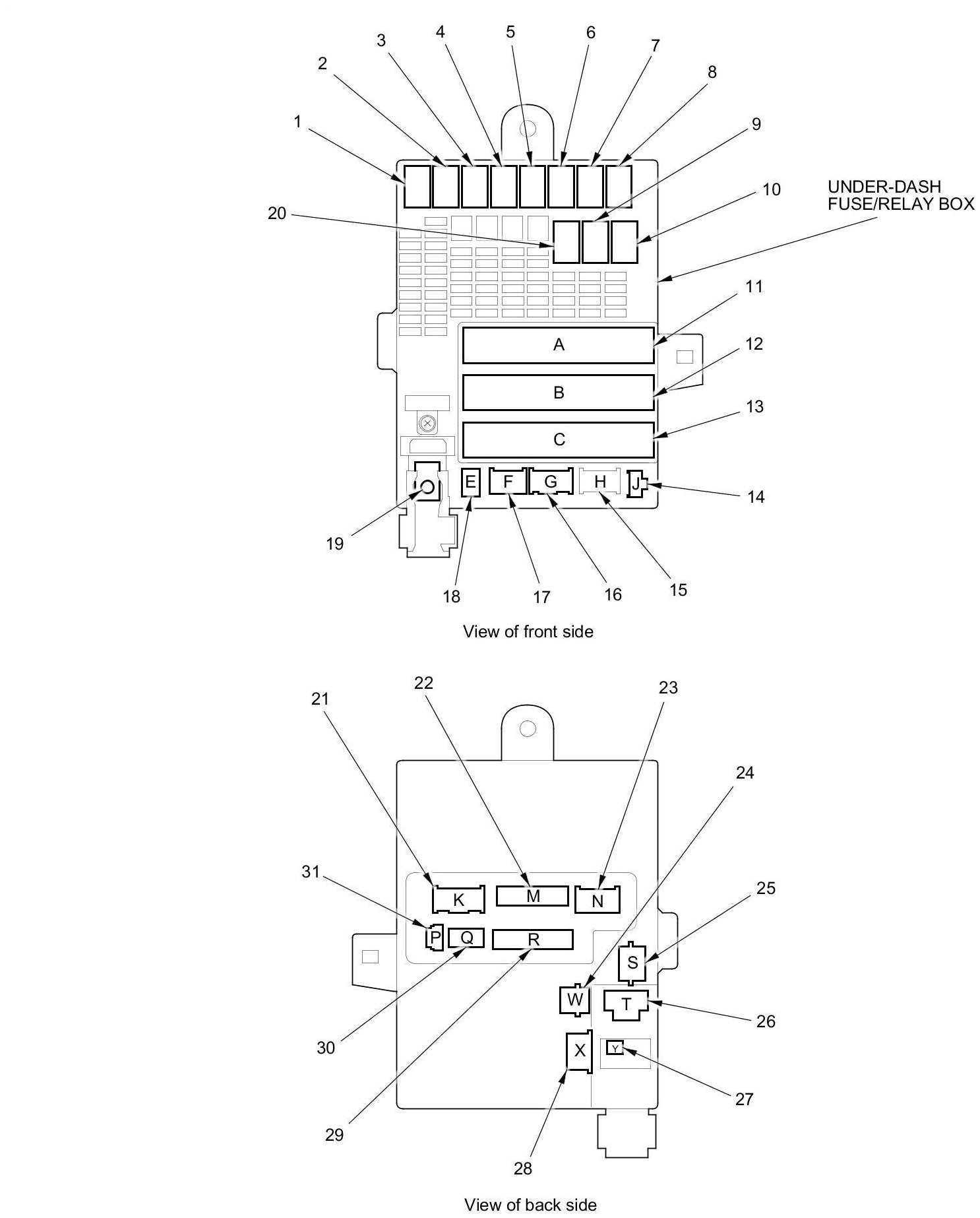Fuse/Relay Box Connector Locations (Under-dash Fuse/Relay Box)