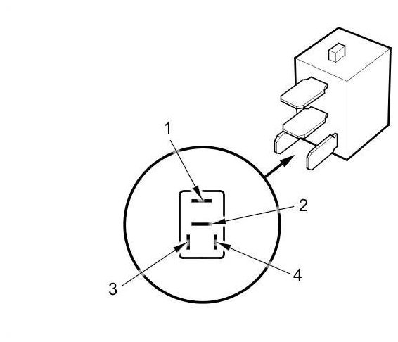 - There should be continuity between terminals No. 1 and No. 2 when battery power is connected to terminal No. 4, and body ground is connected to terminal No. 3.