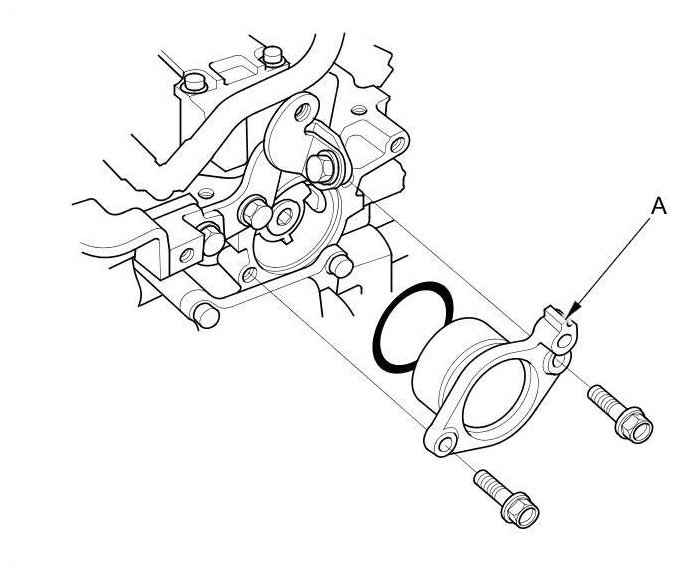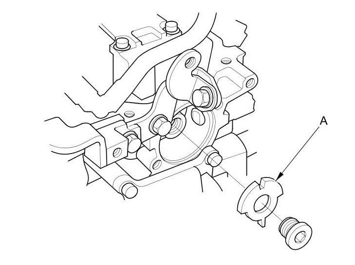 6. Remove the camshaft thrust cover (A).