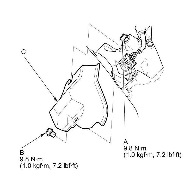 5. Install the parts in the reverse order of removal with a new O-ring (C).