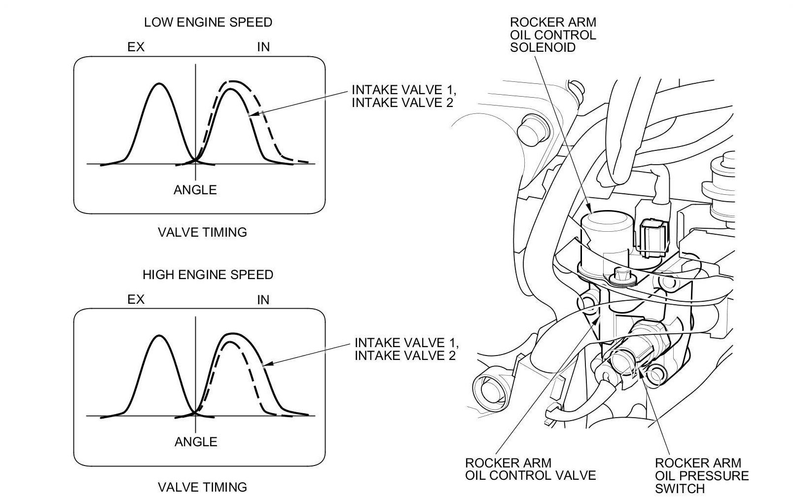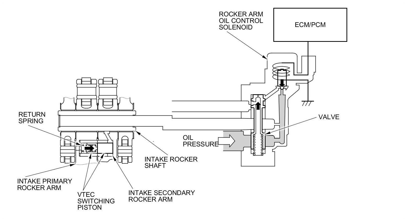 - The rocker arm oil control solenoid switches both intake rocker arms of the VTEC system on and off; the solenoid is controlled by the ECM/PCM.