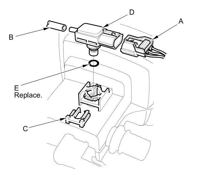 4. Install the parts in the reverse order of removal with a new O-ring (E).