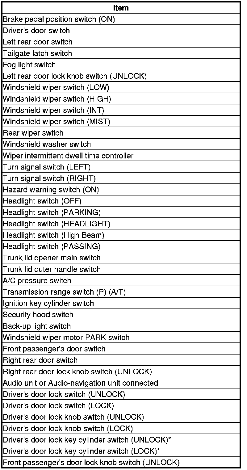 11. The following table lists the circuits that can be checked in Test Mode 2. Operate the switch that is most closely related to the problem. If the circuit is OK, the ceiling light blink once. If the circuit is faulty, there is no indication.