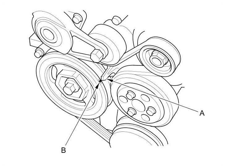 9. Aim the light toward the pointer (A) on the chain case. Check the ignition timing under no load condition (headlights, blower fan, rear window defogger, and air conditioner are turned off).