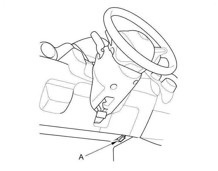 2. Connect the updating tool to the data link connector (DLC) (A).