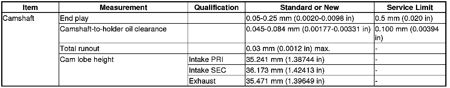 Camshaft Specification(s)