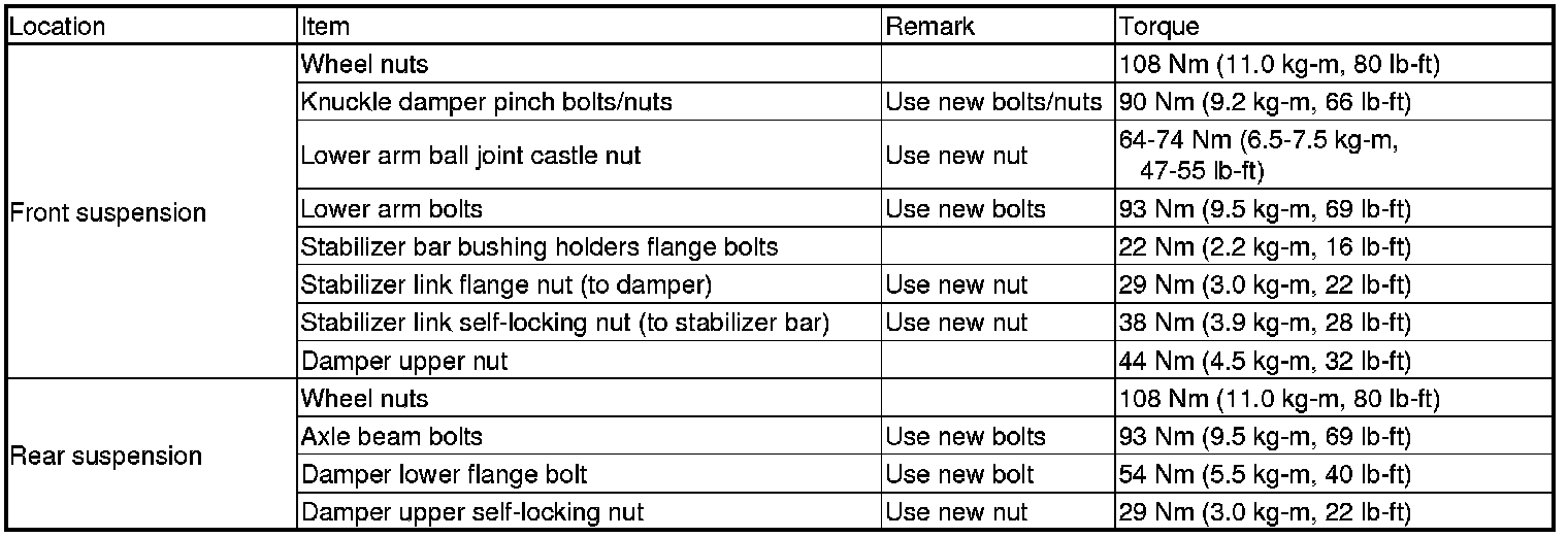 Torque Specifications
