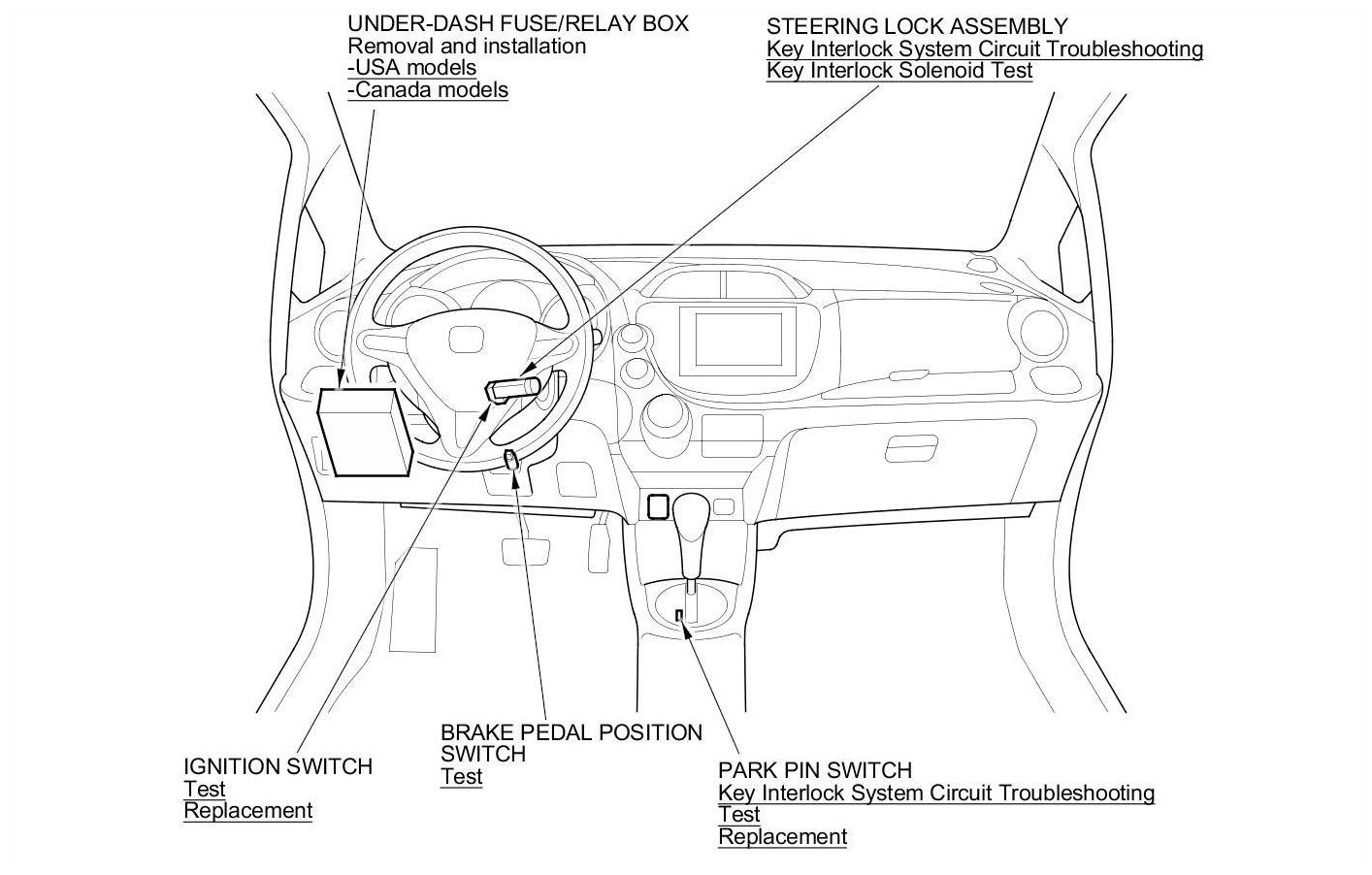 Ignition Switch Component Location Index