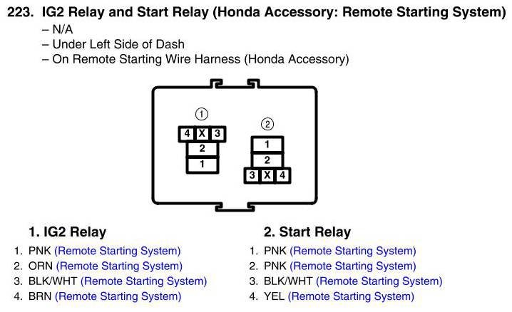 IG2 Relay And Start Relay Connector View (Honda Accessory: Remote Starting System)