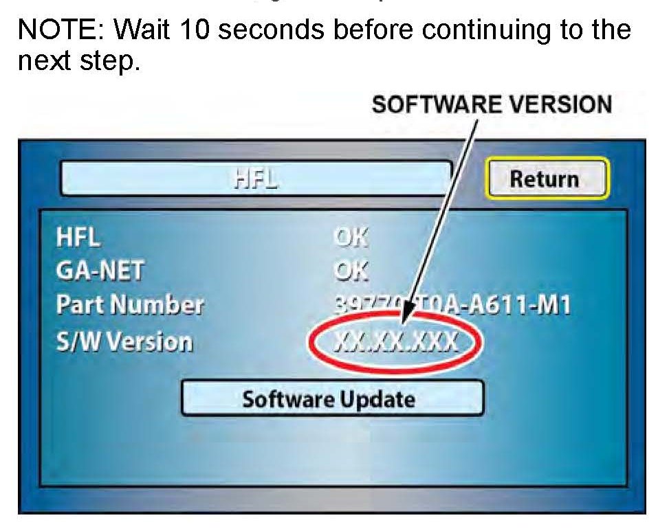 19. The vehicle's navigation screen may not indicate the same software version as shown on the HFL update tool. Do the following to confirm that the software in the HFL control unit has been updated: