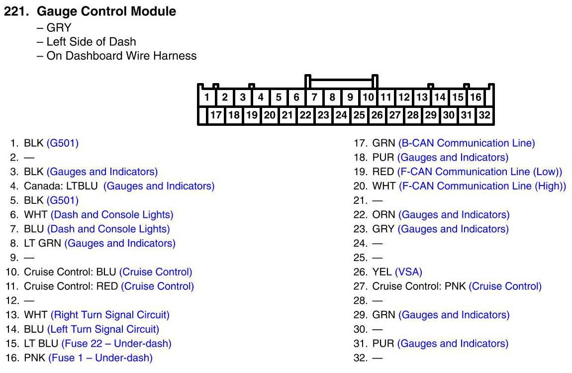 View 221 - Gauge Control Module Connector View