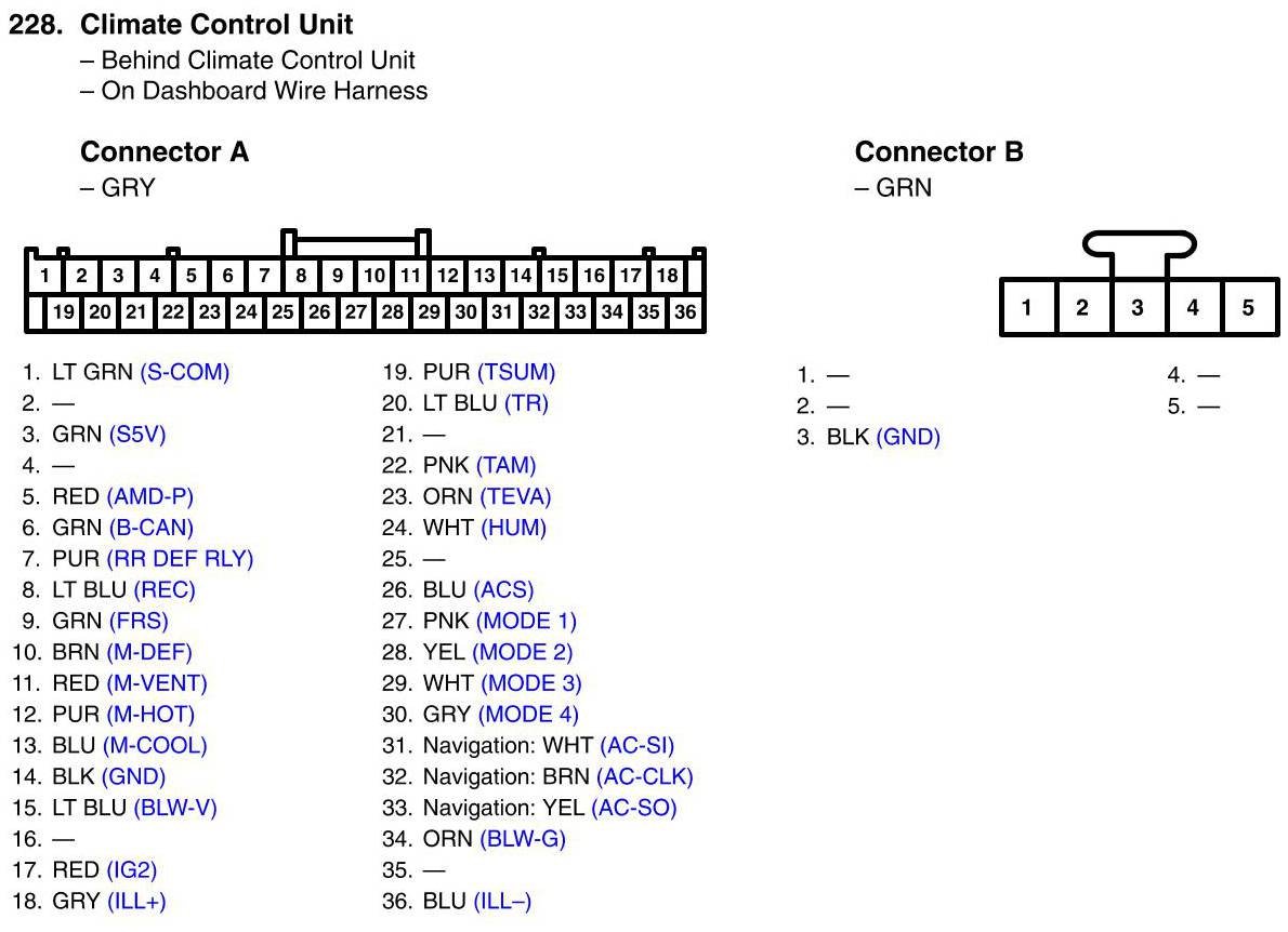 View 228 - Climate Control Unit Connector View