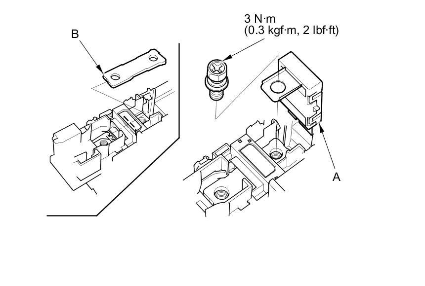 1. Remove the under-dash fuse/relay box (USA model) Under-Dash Fuse/Relay Box Removal and Installation (USA Models), (Canada model) Under-Dash Fuse/Relay Box Removal and Installation (Canada Models).