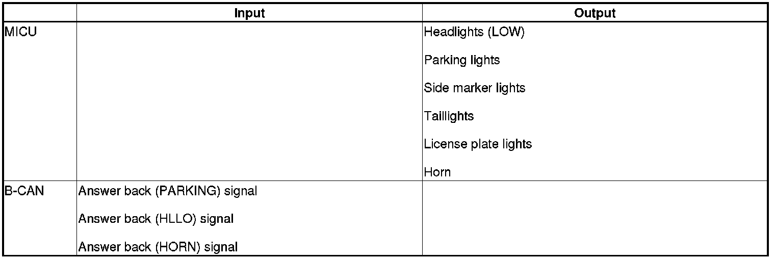 The MICU controls the keyless PANIC operation based on signals sent by B-CAN.