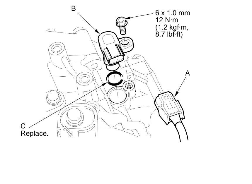 10. Install a new O-ring (C) on a new vehicle speed sensor, then install the vehicle speed sensor in the transmission housing.