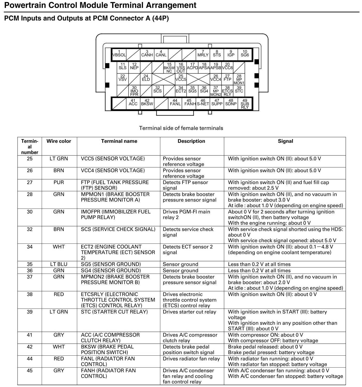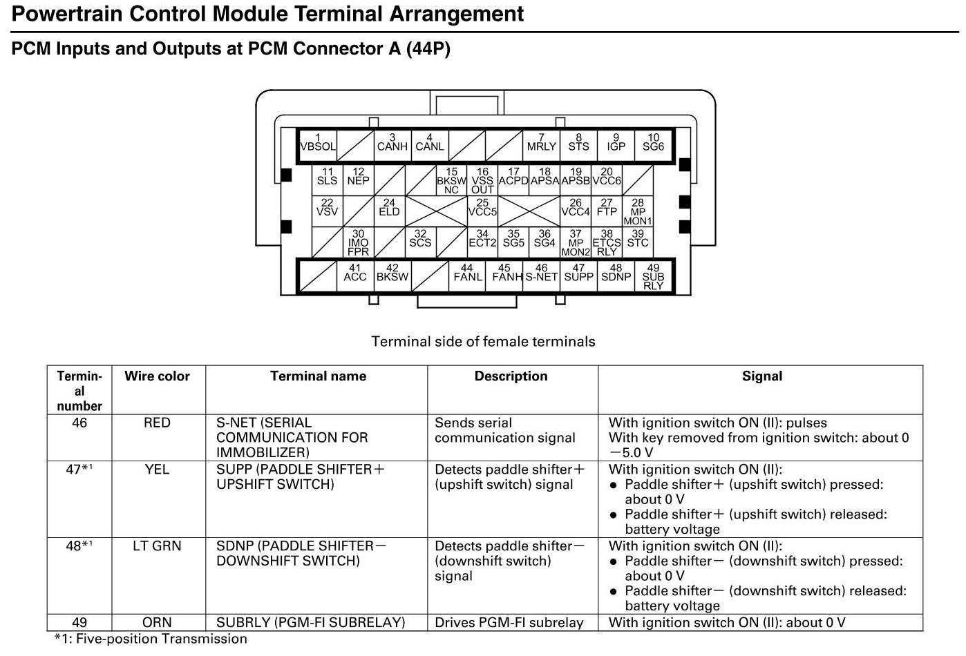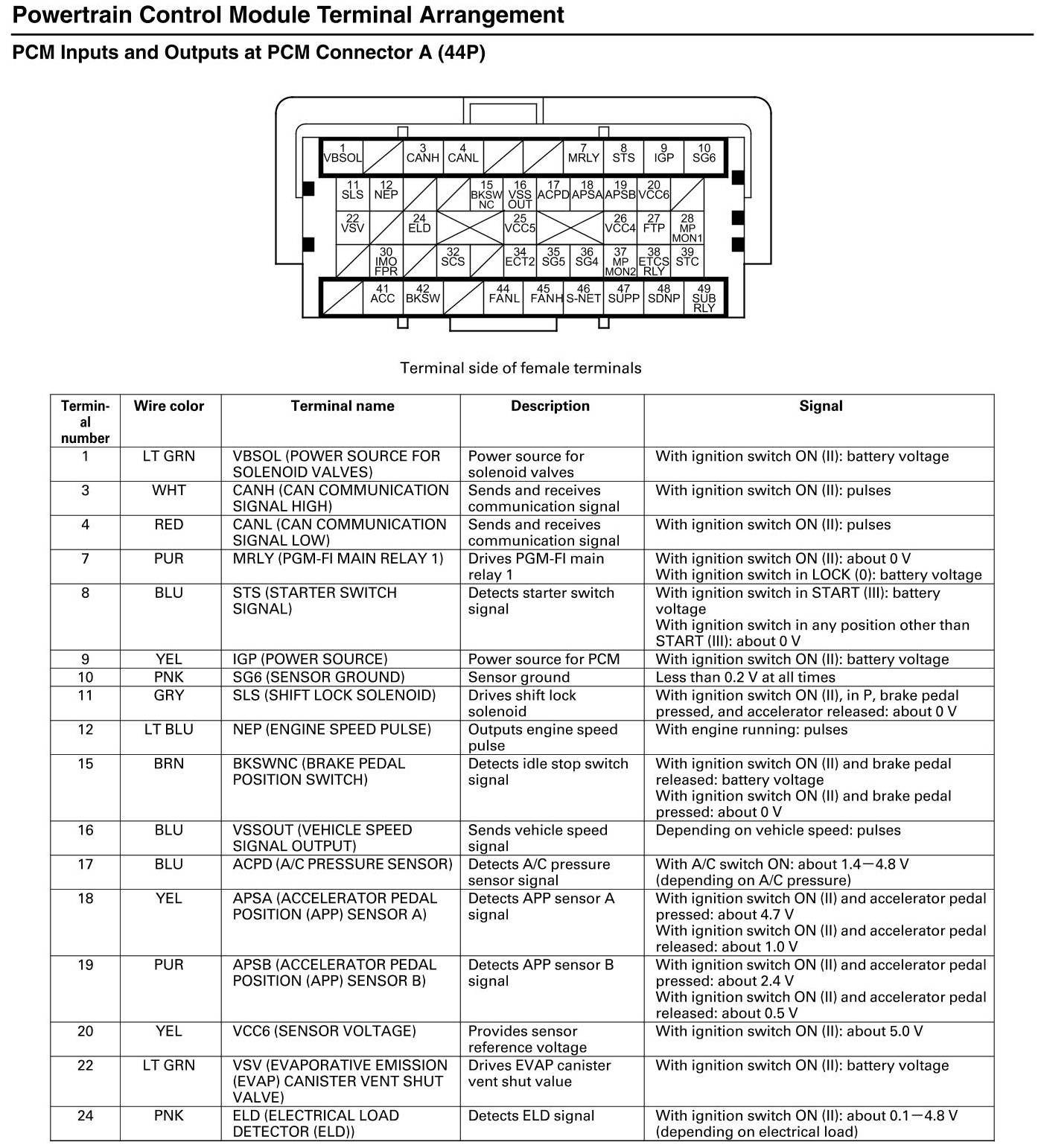 PCM Inputs And Outputs At Connector A