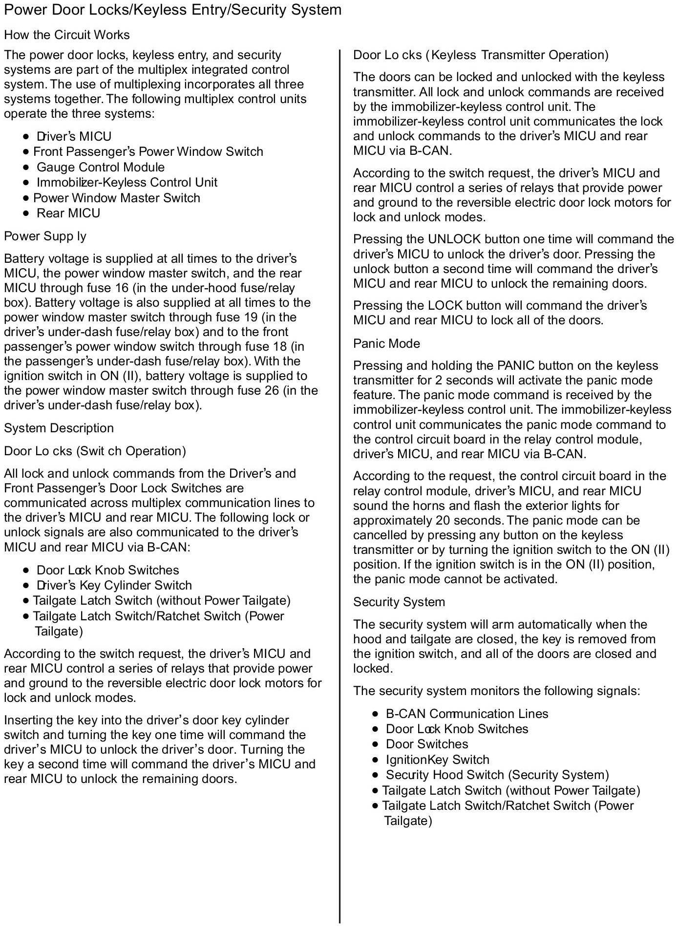 How The Power Door Locks/Keyless Entry/Security System Circuit Works