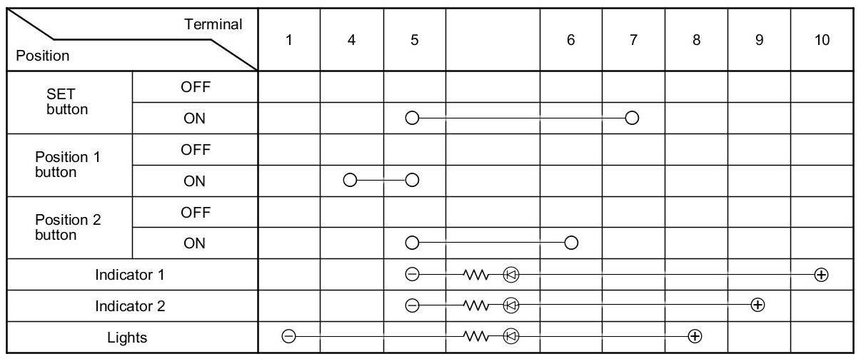 4. Check for continuity between the terminals in each switch position according to the table.