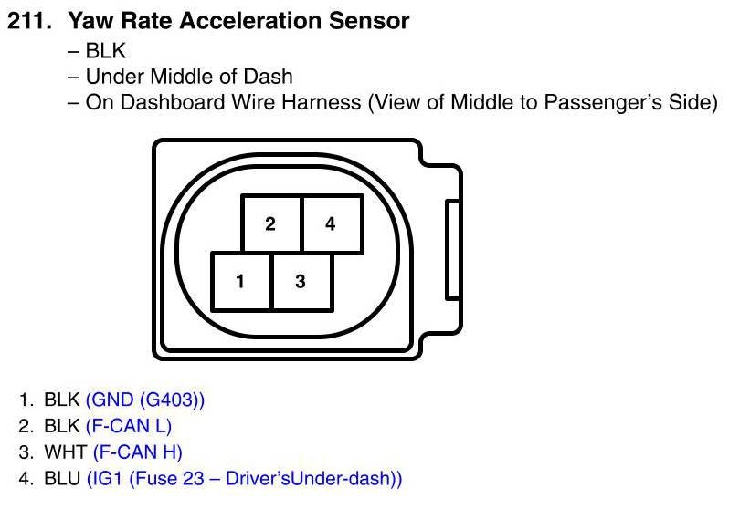 View 211 - Yaw Rate Acceleration Sensor Connector View