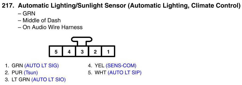 View 217 - Automatic Lighting/Sunlight Sensor Connector View (Automatic Lighting, Climate Control)