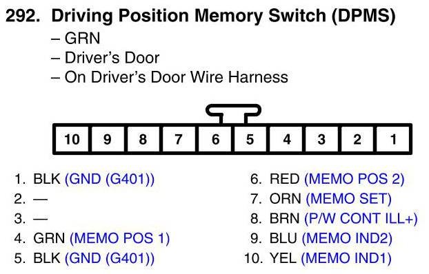 View 292 - Driving Position Memory Switch Connector View (DPMS)