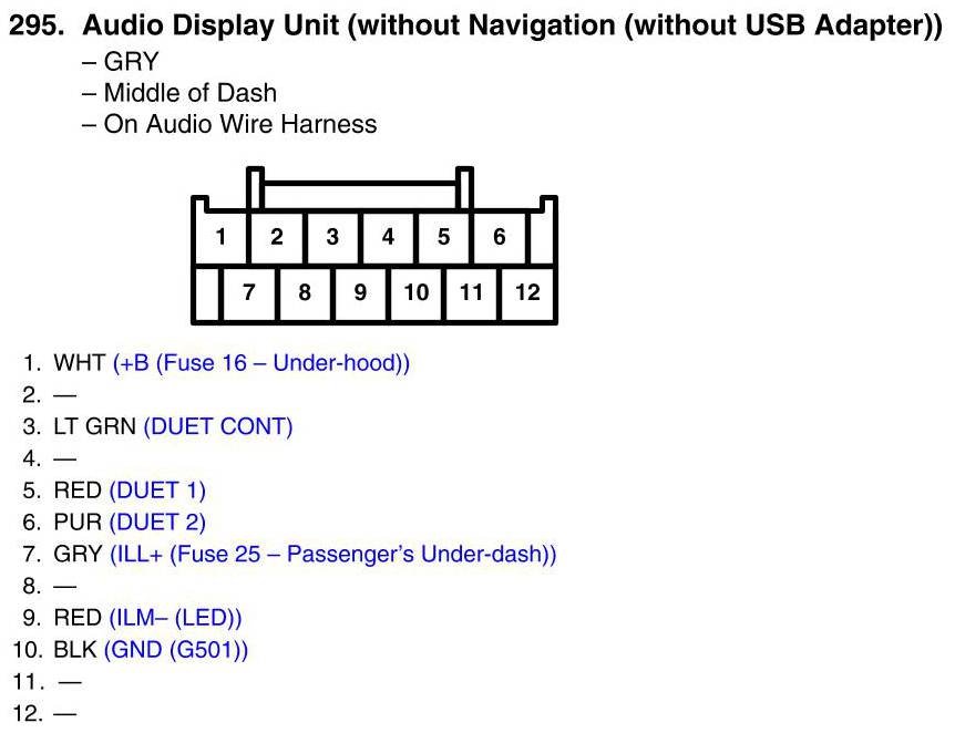 View 295 - Audio Display Unit Connector View (without Navigation (without USB Adapter))