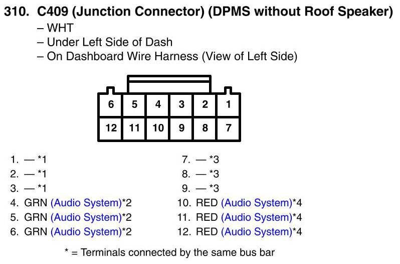 View 310 - C409 (Junction Connector) Connector View (DPMS Without Roof Speaker)