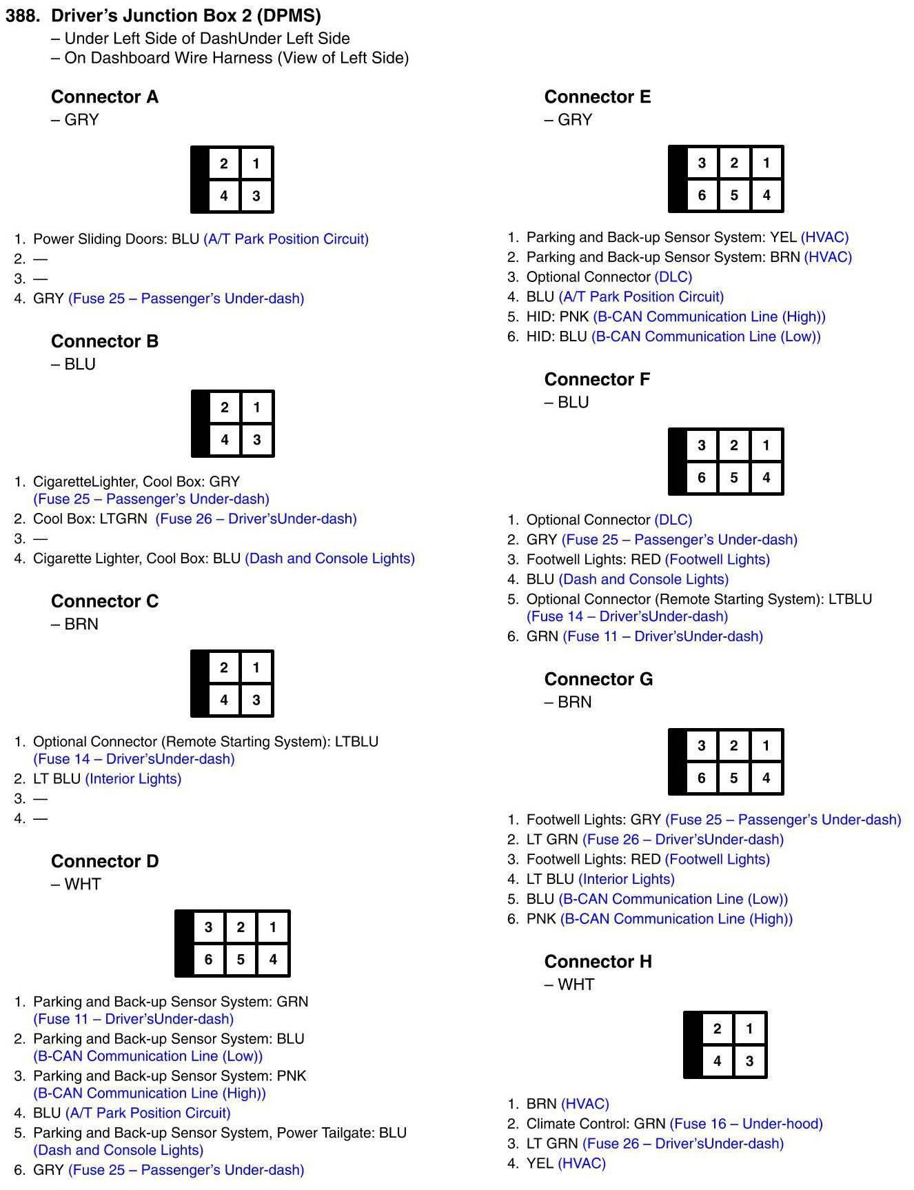 View 388 - Driver's Junction Box 2 Connector View (DPMS)
