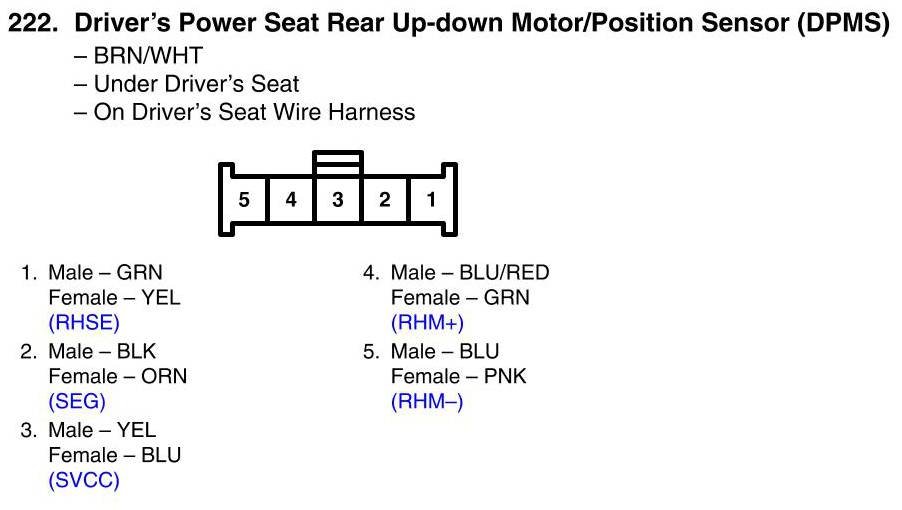 Driver's Power Seat Rear Up-Down Motor/Position Sensor Connector View (DPMS)