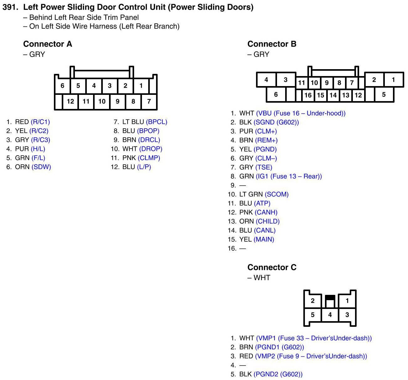 Left Power Sliding Door Control Unit Connector View (Power Sliding Doors)
