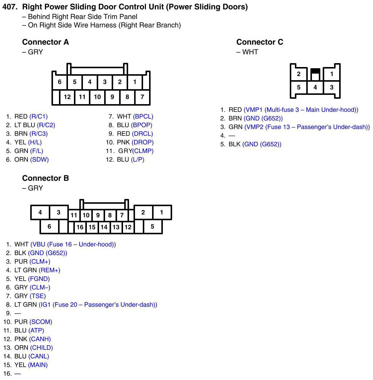 Right Power Sliding Door Control Unit Connector View (Power Sliding Doors)