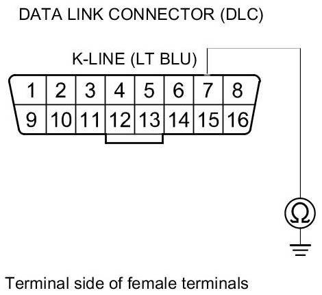 Repair an open in the wire between the DLC (K-line) and the appropriate connector.