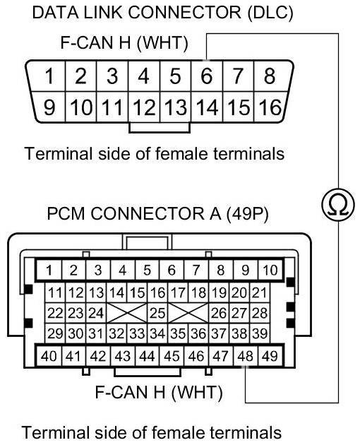 Repair an open in the wire between the PCM (A49) and DLC terminal No. 14.