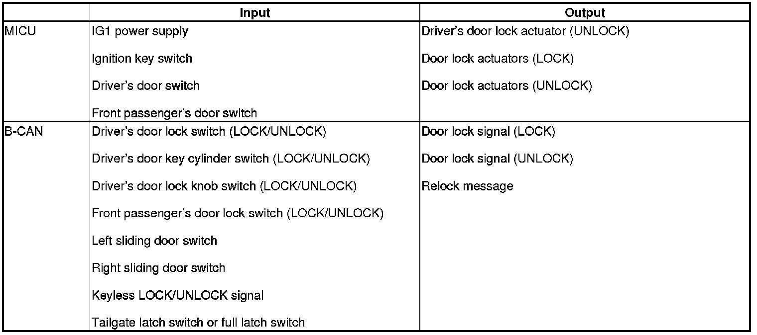 The MICU controls the door lock actuators based on door lock signal sent by B-CAN data.