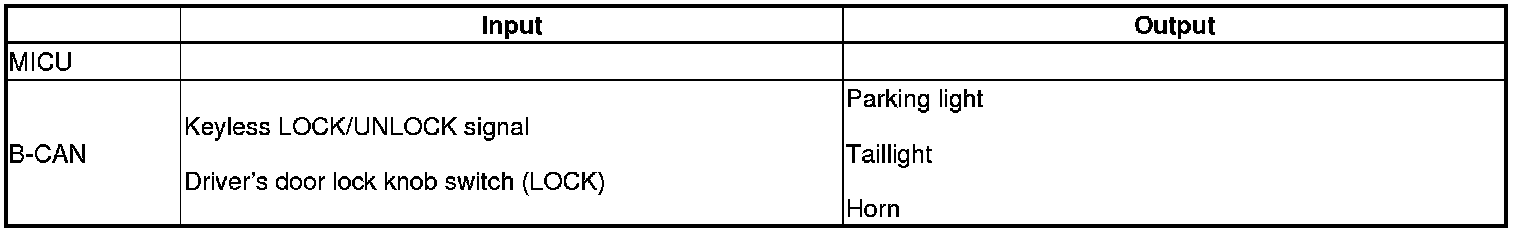 The MICU controls the lighting system and horns based on keyless signals sent by B-CAN.