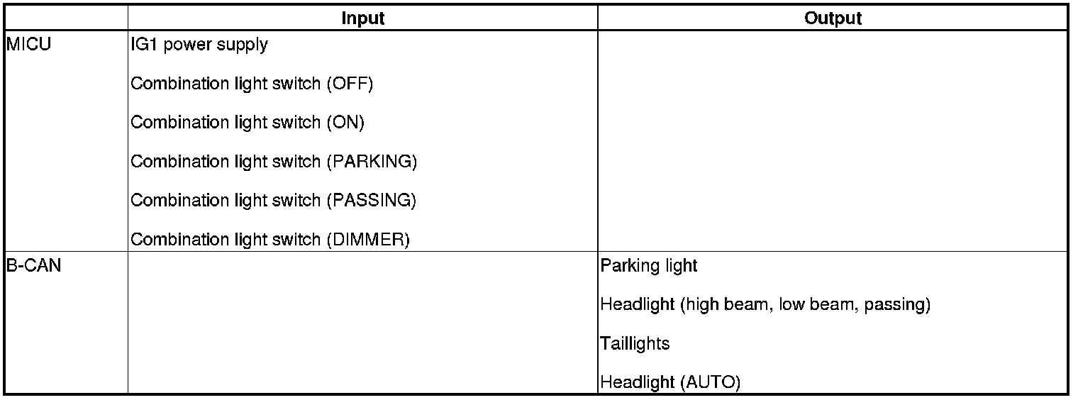 The MICU controls the automatic lighting system based on inputs from each switch and B-CAN data.