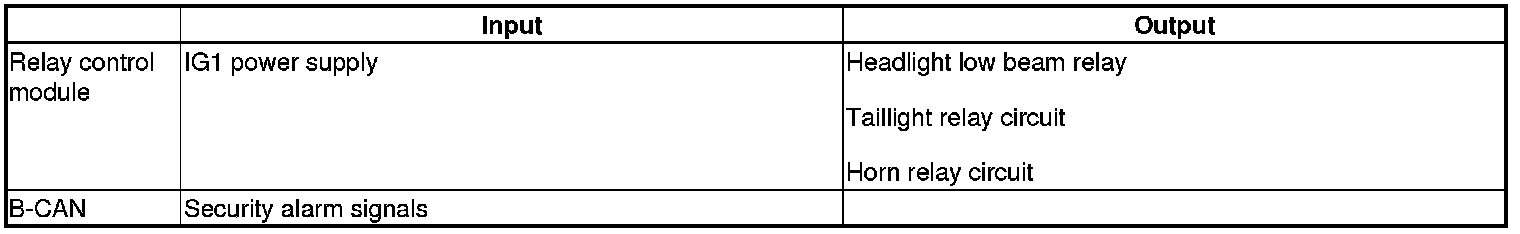 The relay control module controls the security system based on inputs from the security input sent by B-CAN data.