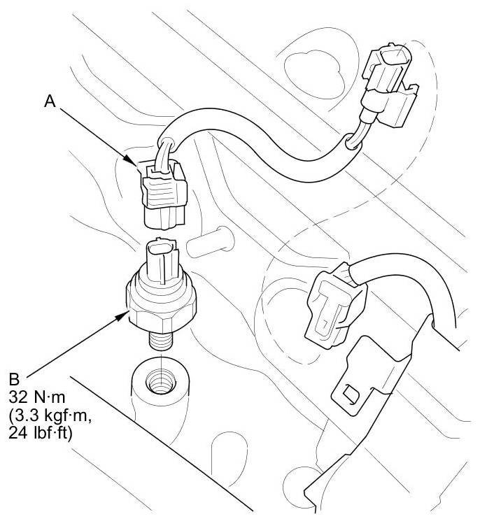 4. Remove the knock sensor (B).