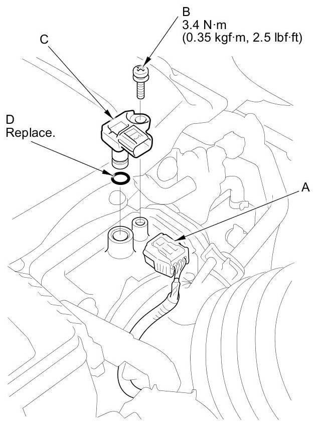 Install the parts in the reverse order of removal with a new O-ring (D).