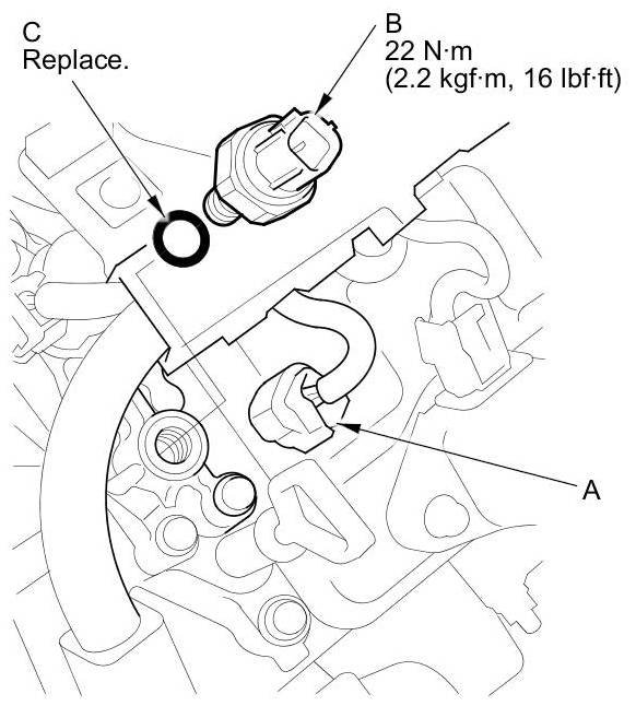 4. Install the parts in the reverse order of removal with a new O-ring (C).